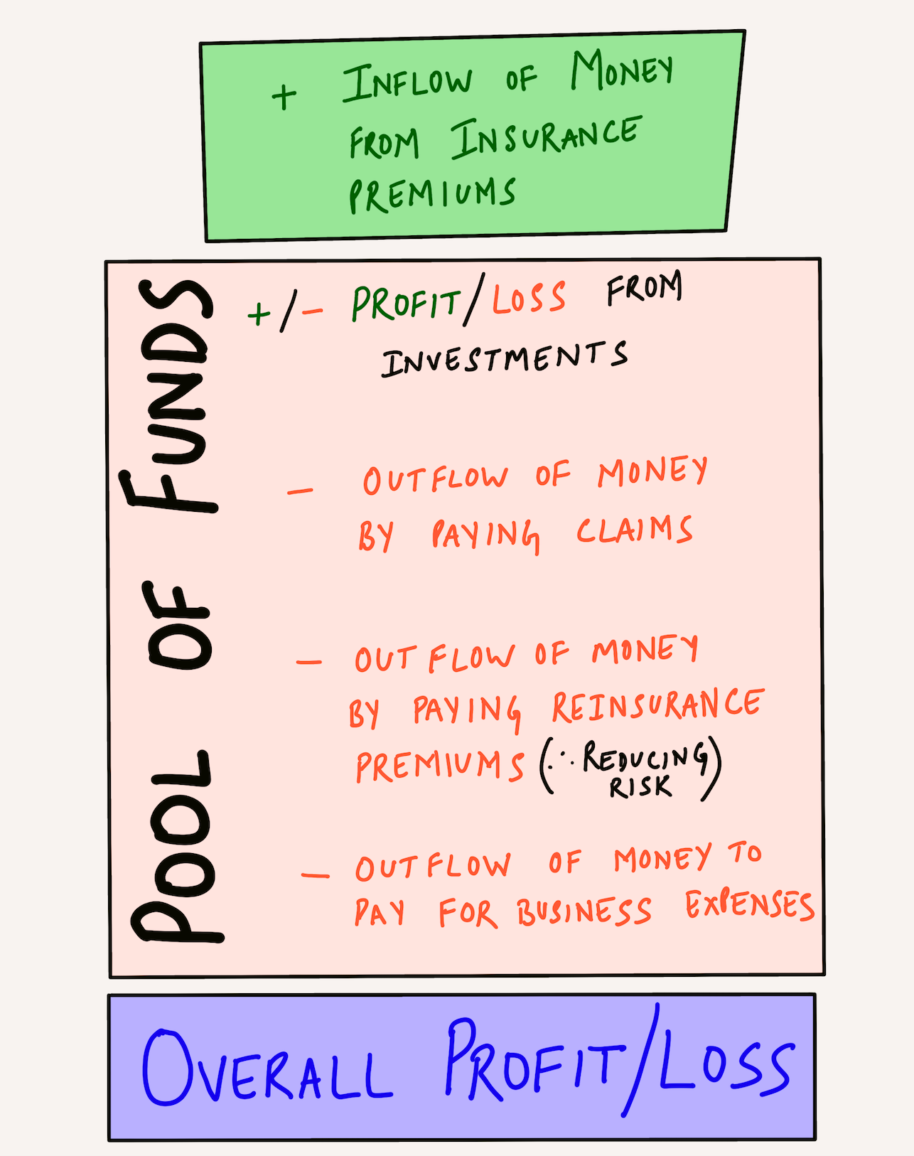 - Profit / Loss from investments - Since insurance in one of the few industries in which — money is received first (premium), and the costs come later (claims) — investing that money skillfully is key.